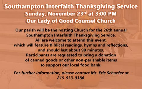All Masses are in the Upper Church. The Mass Schedule is also available by calling 215-357-1300 and choosing option 5.