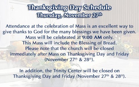 The schedule varies throughout the year. Please check the website or the Parish Bulletin immediately prior to the Holy Day for the schedule.